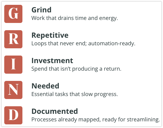 The GRIND Workshop by LEMA Logic is a private, tailored, 2-hour diagnostic working session